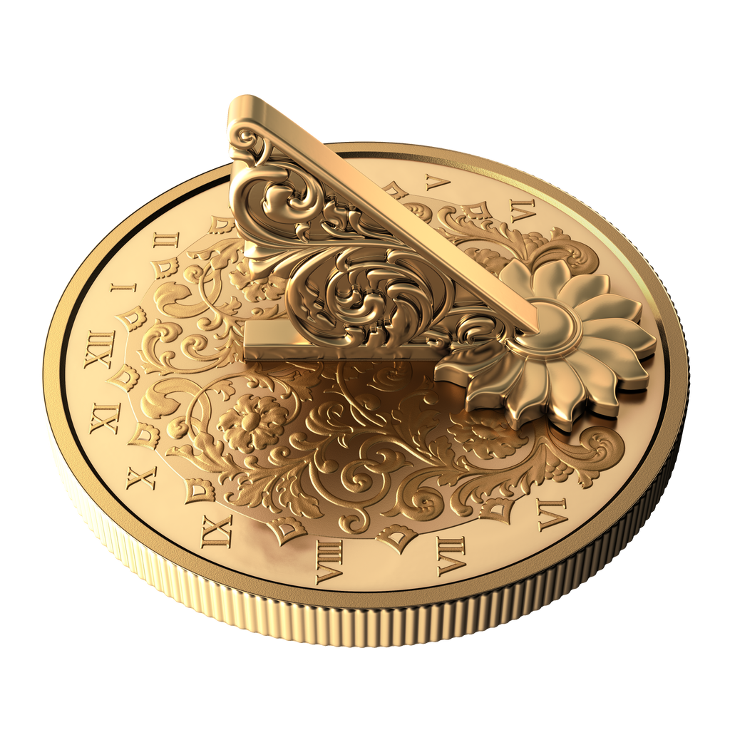 More than just an eye-catching garden adornment, the sundial is humanity’s oldest known timekeeping device—one that functions just as well today as it did in ancient times. An elaborate and functional showcase of craftsmanship, this limited collectible adds a working sundial to your coin collection. Its embellishment is a gold-plated brass gnomon that, when placed in view of the sun and in the direction of true north, casts an angled shadow onto the elaborately engraved gold-plated 99.99% pure silver base to indicate local solar time.