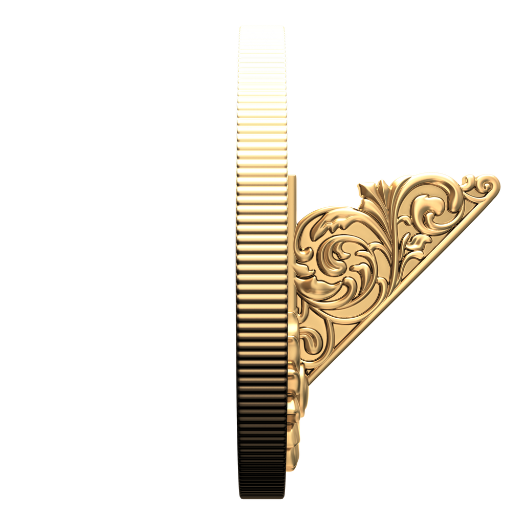 The acanthus leaf motif has a timeless look that harkens back to a bygone era, while various frostings highlight different design elements and give the coin a more brushed appearance.
