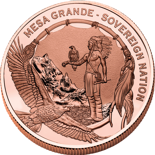 On the obverse side, the coin features the official seal of the Mesa Grande Sovereign Nation, representing the tribe's identity and values. This intricate design serves as a reminder of the community's strength and unity.